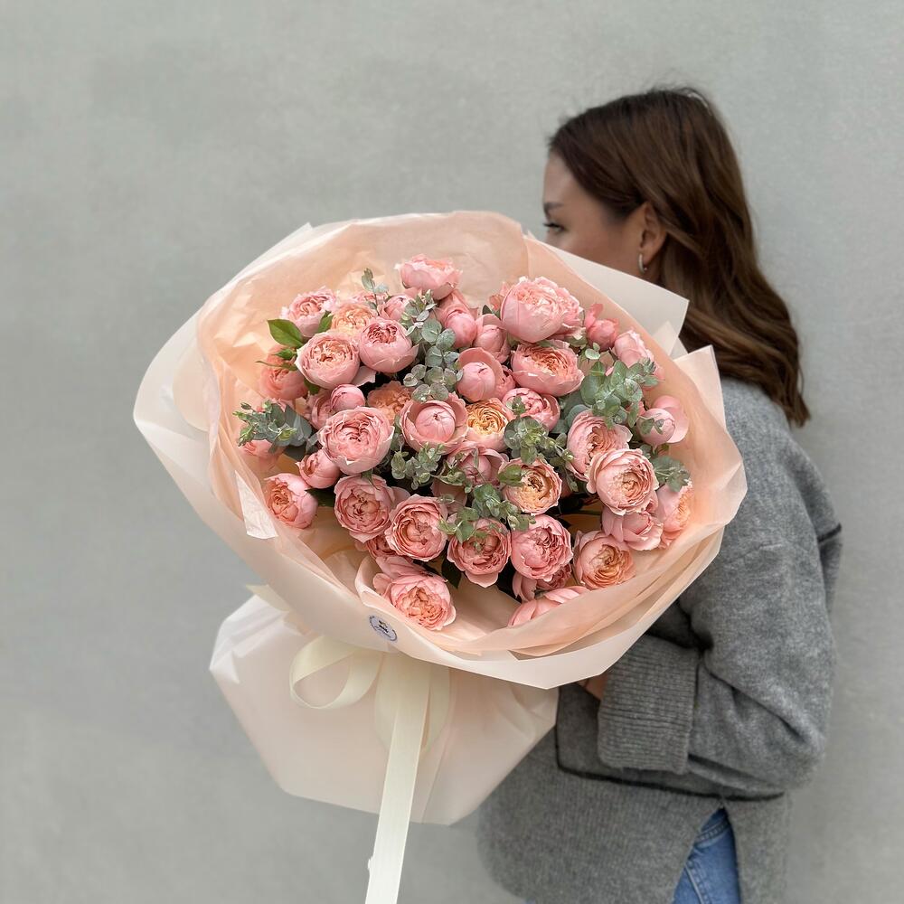 Эвкалипт – 2 шт. Кустовая роза – 15 шт.